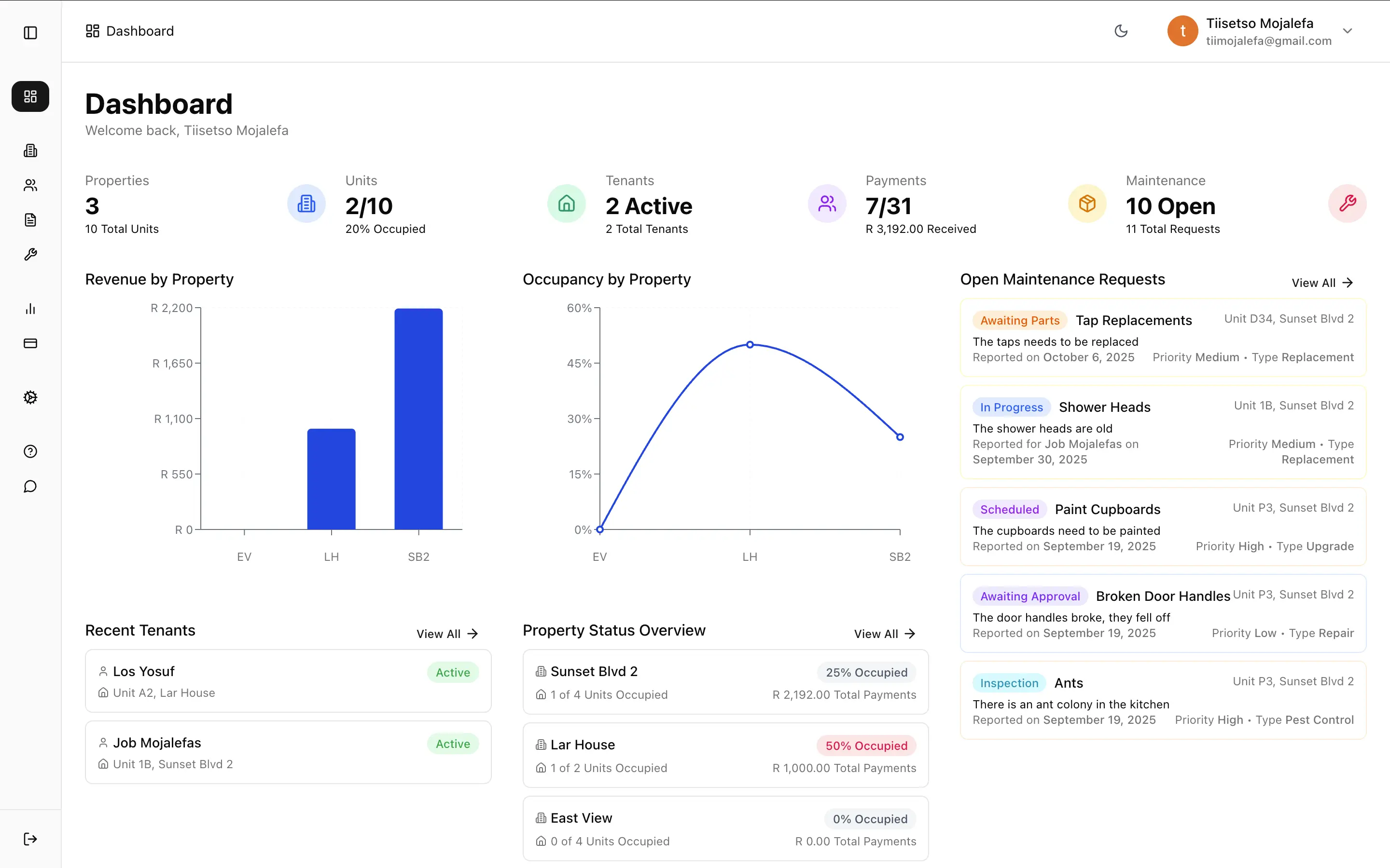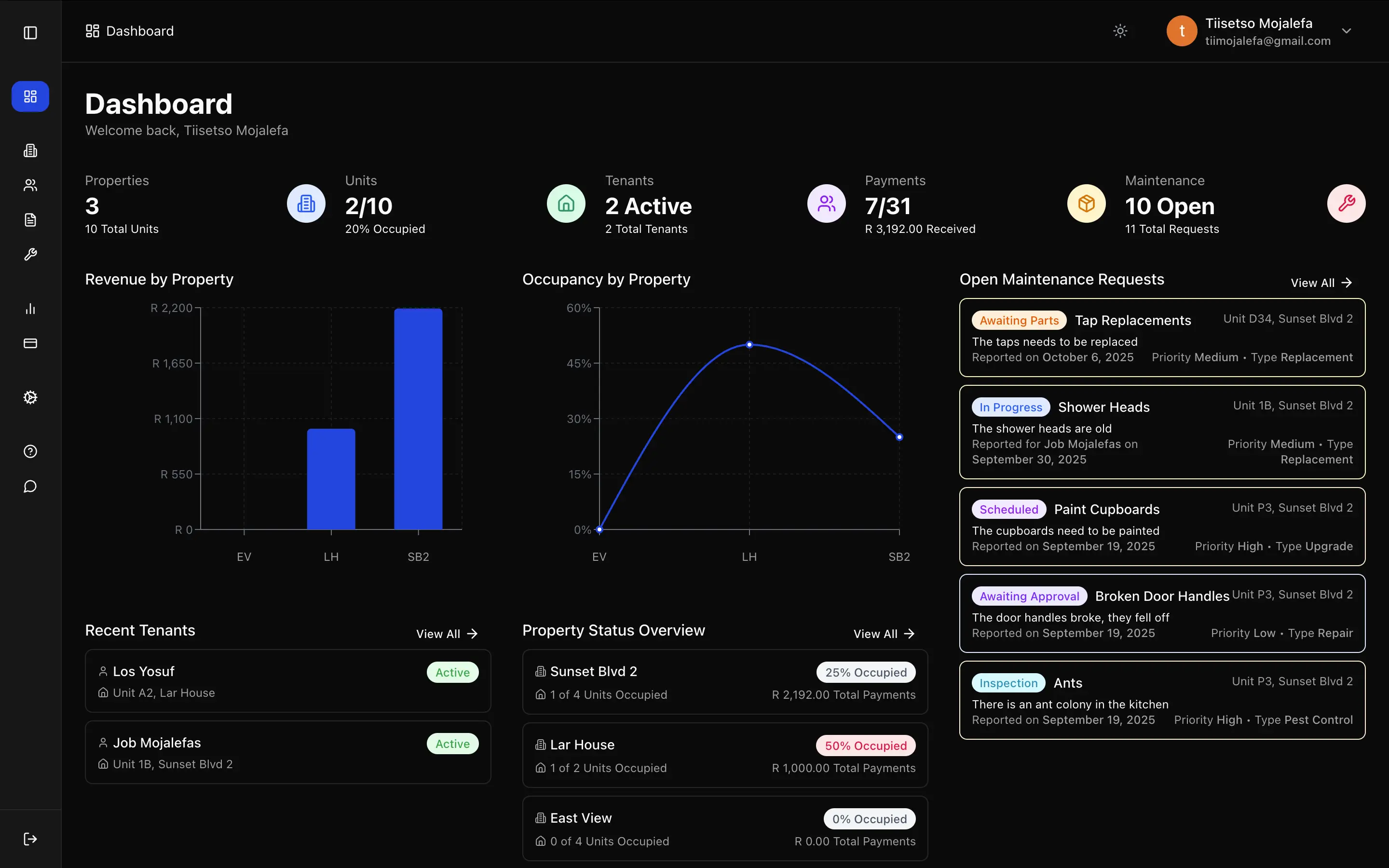 Stay on top of tenants, leases, and payments — all without spreadsheets